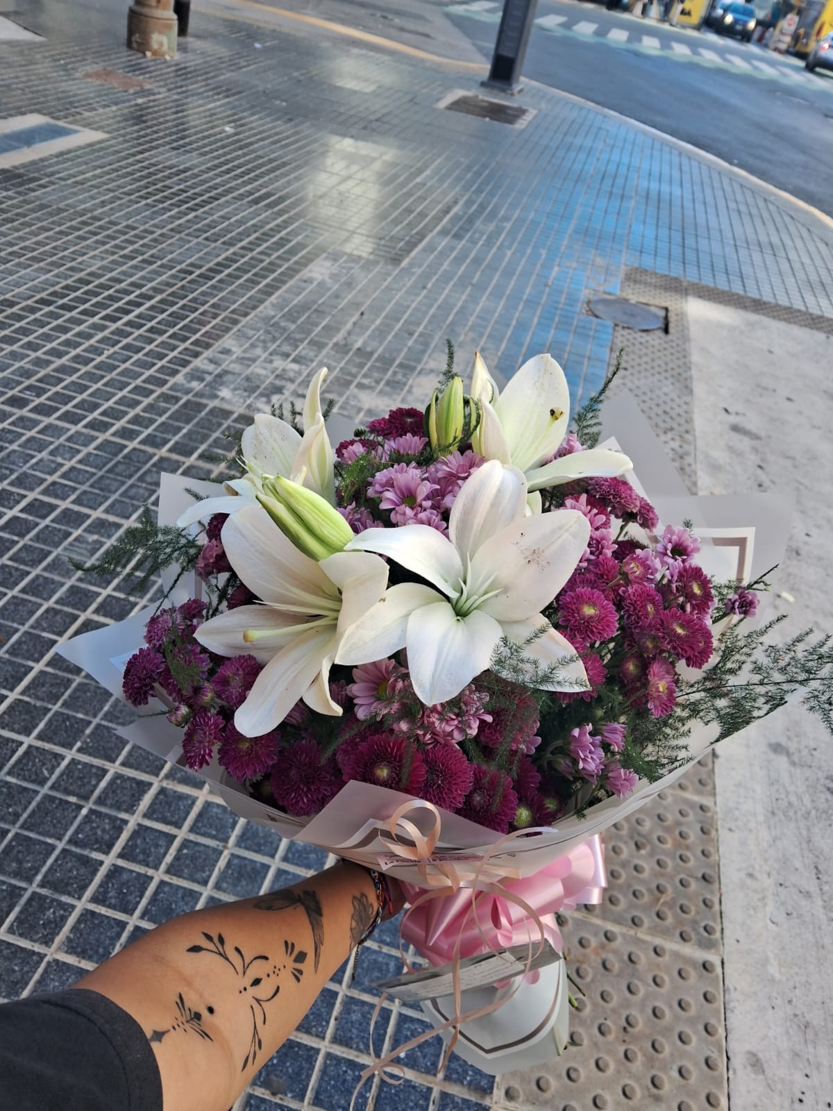 Mix de margaritas y/o astromelias con 3 liliums
