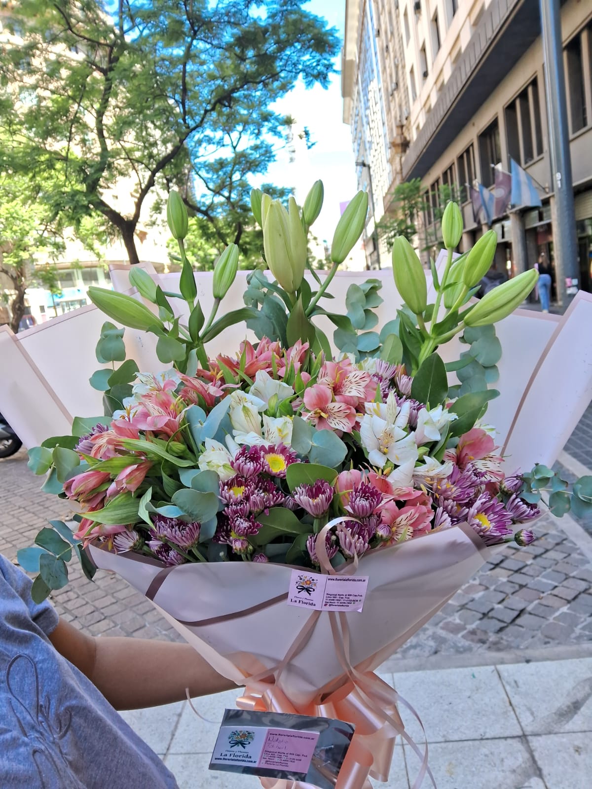 3 liliums y un mix de astromelias/astromelias y margaritas